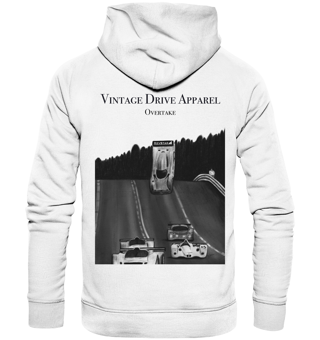 Dieser Hoodie mit dem eindrucksvollen Le-Mans-Motiv ist ein absolutes Must-Have für Motorsport-Fans. Auf der Rückseite zeigt ein detailreiches, eigens gestaltetes Motiv den legendären Überschlag des CLK GTR beim 24-Stunden-Rennen von Le Mans 1999 – ein dramatischer Moment, der bis heute unvergessen bleibt. Die Dynamik und Spannung dieses ikonischen Rennvorfalls wird auf dem Hoodie perfekt eingefangen. Auf der Vorderseite rundet der Vintage Drive Apparel Schriftzug das Design stilvoll ab und verleiht dem Hoodie eine zeitlose Ästhetik.